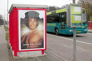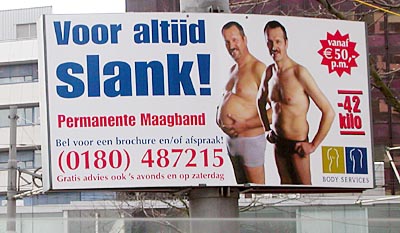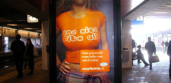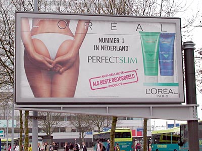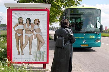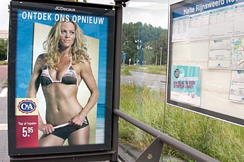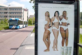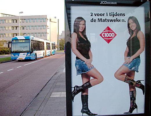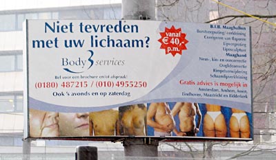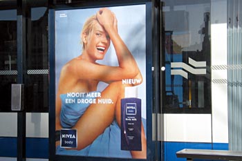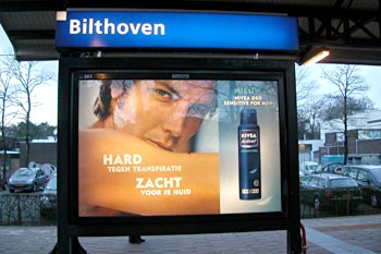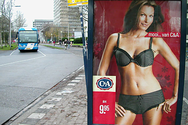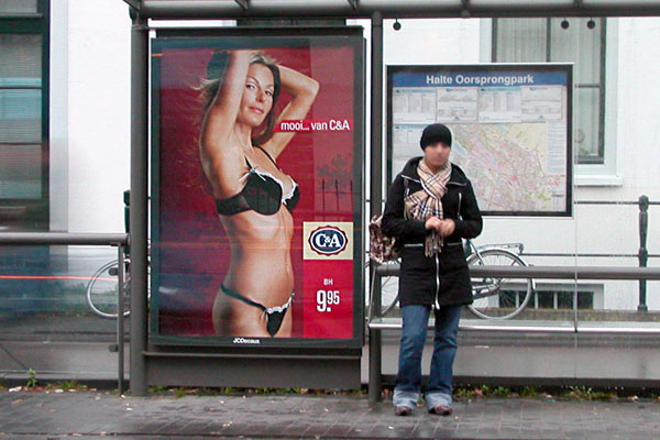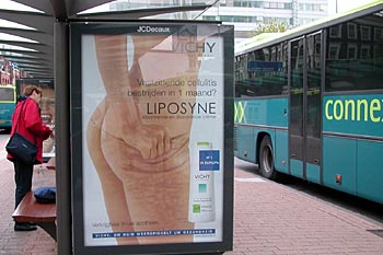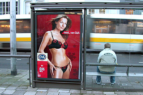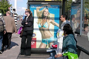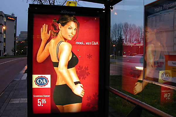 Utrecht, Neude, 21 oktober 2005. Billboard en spiegelbeeld. Mannen die met hun huid bezig zijn noemen ze metromannen. Ik ben geen metroman. |
