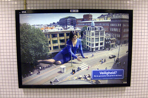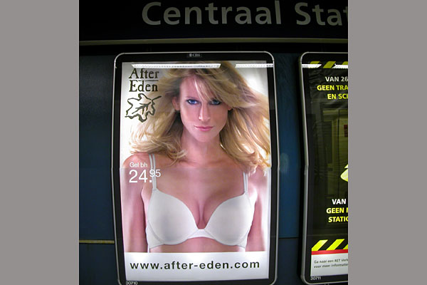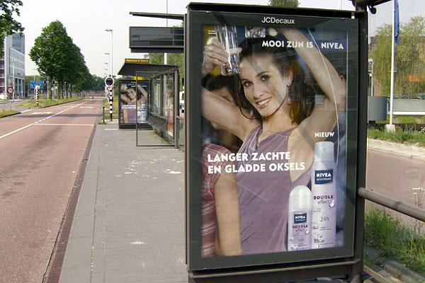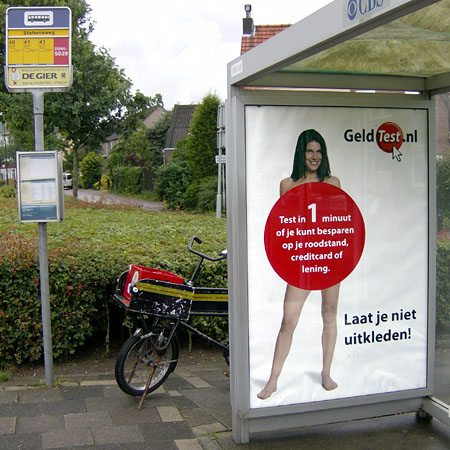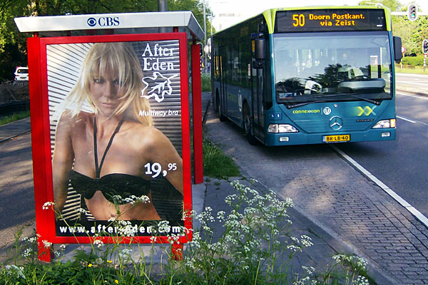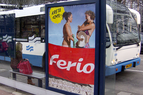 Amsterdam, tramhalte Nieuwezijds Kolk, 21 april 2008. Utrecht, bushalte Rijnsweerd Zuid, 14 mei 2008. |