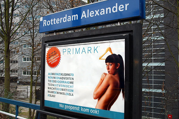Rotterdam Alexander, 8 december 2008. Reclame voor nieuwe kledingwinkel in Alexandrium. |