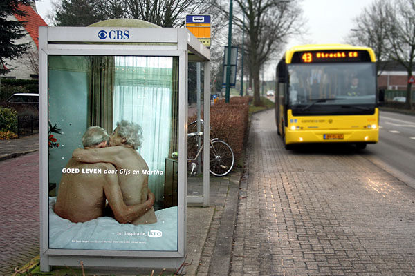 Bunnik, halte Veiling, 13 december 2008. Bushalte met reclame voor KRO-programma. |