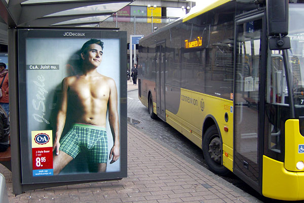 Antwerpen, 3 januari 2009. Reclame op stadsbus. Foto Henk Zwoferink. |