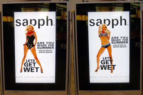 Utrecht, Hoog Catharijne, 31 januari 2010. Inge de Bruijn vraagt ons of we nat willen worden in badpakken van Sapph. |