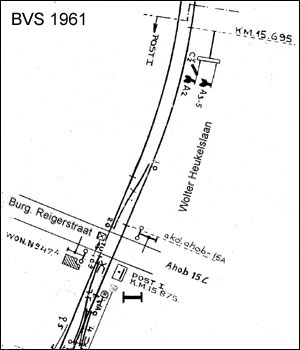 Utrecht, 6 januari 1967. Inrijsein bij het Maliebaanstation, Hilversumse zijde. Het bordessein stond links van de sporen, maar gold voor het rechterspoor, dus voor treinen die uit de richting Blauwkapel kwamen. Dit om de zichtbaarheid van het sein vanuit de boog in het spoor te verbeteren. Het om deze reden links plaatsen van seinen was geen uitzondering. Er was in die tijd nog geen sprake van dat machinisten zonder grondige wegbekendheid de baan op werden gestuurd. Rechts een tekening uit 1961, waarop dit sein is ingetekend. Foto en tekening met dank aan Kees van de Meene. |