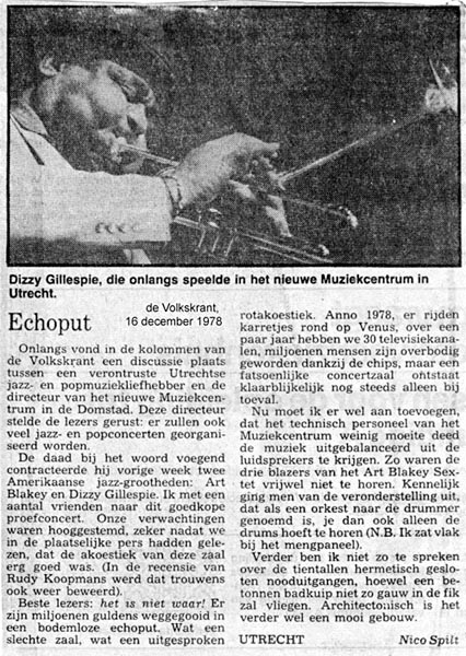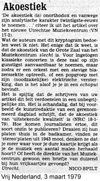 Muziekcentrum VredenburgArchitect Herman Hertzberger. Opgeleverd in 1979. In 2009 gesloten om te worden omgebouwd tot Muziekpaleis, opnieuw onder architectuur van Hertzberger. Zou er nog iets aan die verschrikkelijke akoestiek te doen zijn? En hoe denkt bunkerbouwer Hertzberger er eigenlijk zelf over, anno 2019? Lees het interview in DUIC. |