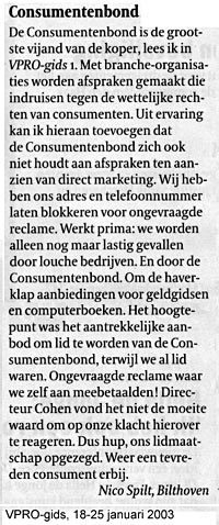Populisme in de krant ongewenstUit een column van Theo Klein in de Volkskrant van 20 januari 2001 Het 'populistische toontje' van de Volkskrant staat garant voor een gestage stroom brieven. Nogal wat lezers ergeren zich aan pogingen teksten toegankelijker te maken door amicaal en vaak modieus taalgebruik. Volgens hen staat dat gelijk aan vervlakking; dat wensen ze niet op hun deurmat. De vorige aflevering van deze rubriek over het conflict tussen het Openbaar Ministerie en de Volkskrant en de rubriek van 6 januari over de cafébrand in Volendam, vormden voor lezers aanleiding het populisme opnieuw aan te kaarten. 'Een perfecte analyse van wat er aan de hand is met de Volkskrant', concludeert Nico Spilt uit Bilthoven in een e-mail. Hij reageerde op de vaststelling dat in de artikelen over het grote beursfraudeonderzoek slordig met bronnen wordt omgegaan, dat ze soms veel weghebben van voetbalverslagen en dat krachtige beeldspraak niet wordt geschuwd. Dat NRC Handelsblad doorgaans een rustiger toon hanteert, is volgens Spilt een waarheid als een koe. 'Doe er iets aan!' (rest van de column te vinden op internet) |