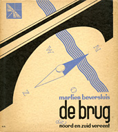 De brug die noord en zuid vereent. Martien Beversluis. Bosch & Kuining, Baarn. Een lang, dramatisch gedicht dat in 1936 werd geschreven in het kader van een door de AVRO uitgeschreven prijsvraag ter gelegenheid van de inwijding van de nieuwe studio van die omroep.Het onderwerp van het gedicht is de verkeersbrug over de Moerdijk die in 1936 in gebruik werd genomen. Er lag sinds 1872 al een spoorbrug. Beide bruggen zijn later vervangen: de spoorbrug in 1955, de verkeersbrug in 1978. Sinds 2006 is er nog een derde brug: voor de HSL naar Brussel. Martien Beversluis (1894-1966) was dichter en journalist. Aanvankelijk was hij socialist; hij werkte onder andere voor de VARA. Later veranderde zijn politieke opvattingen: in 1940 werd hij lid van de NSB en in 1942 van de Nederlandsche SS. Na de oorlog werd hem daarom een lang publicatieverbod opgelegd. Hij schreef nog enkele dichtbundels en toneelstukken. |