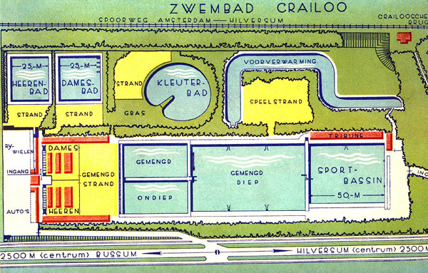 In mijn jeugd ben ik heel vaak naar het openluchtzwembad Crailoo geweest. Maar ik ben niet jeugdig meer, en het zwembad bestaat ook niet meer. De foto is gemaakt vanaf de toerit naar de Crailose brug. Het zwembad lag langs de spoorlijn tussen Hilversum en Bussum. Zwembad Crailoo was ontworpen door Dudok en werd in 1931 geopend. Aan de andere kant van het spoor liggen de stapelplaats Crailoo (tegenwoordig de bovenbouwwerkplaats Crailoo van voestalpine Railpro) en het vuilnisstation van Hilversum. Foto en kaart uit de collectie van Emile Albers. |