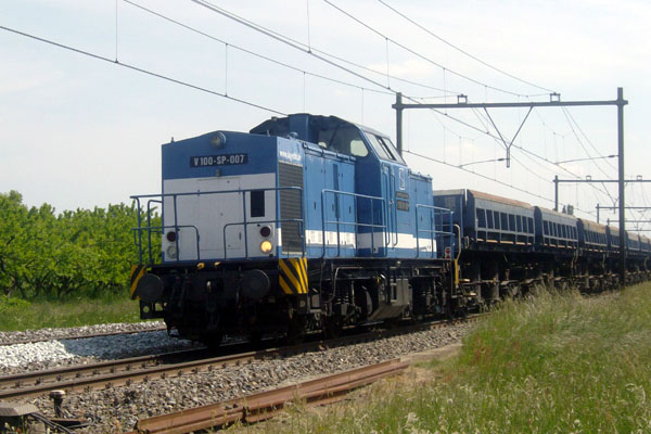 Tussen Utrecht Lunetten en Houten, 6 juni 2010. Omgeleide ertstrein op weg van de Maasvlakte naar