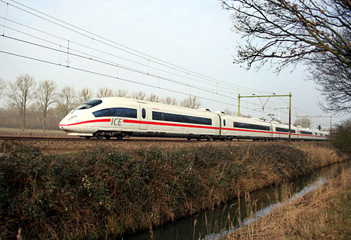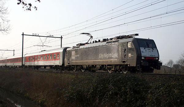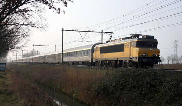 Bunnik (bij de grens met Utrecht en Houten, vlakbij Lunetten), 1 maart 2009. Op deze zondagochtend heb ik in iets meer dan een uur vijf internationale treinen gespot: om 9:12 loc 1833 met een Alpen Express richting Utrecht; om 9:34 loc 189 092 met trein 418 richting Utrecht; om 10:06 ICE-stel "Amsterdam" als trein 123 richting Den Bosch; om 10:12 loc 1745 met een Alpen Express richting Utrecht; om 10:32 loc 1611 met trein 446 richting Utrecht. De ICE en de treinen 418 en 446 waren omgeleid via Venlo, vanwege werkzaamheden bij Emmerich. Bekijk ook het filmpje. |