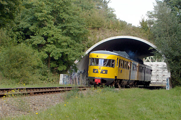 Dieseldag bij de ZLSM, 25 september 2005. Railbus vertrekt uit Simpelveld. Foto Rob Quaedvlieg. |
