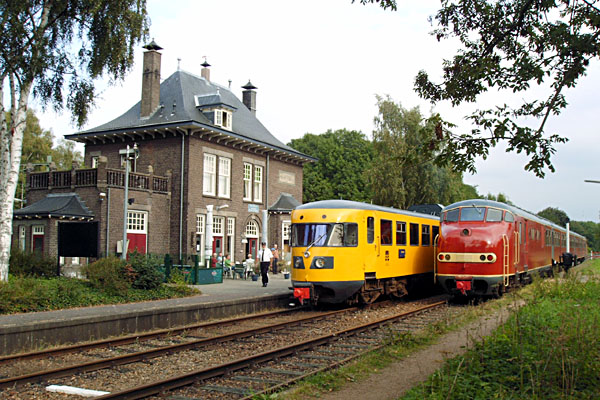 Schin op Geul, 24 september 2005. Ontmoeting tussen treinstel 186 van de HSA en 113 van de HIJSM. Foto Martijn Jaminon. |