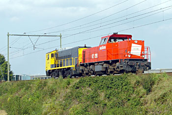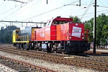 Op 24 september 2005 werd loc 2278 overgebracht naar de ZLSM, ten behoeve van de dieseldag op zondag 25 september. Als trekkracht deed de fraai glimmende Railion-loc 6508 dienst, die zelf ook te zien zou zijn bij de ZLSM. Foto's gemaakt door Rob Quaedvlieg (bij Eindhoven) en Frank Leurs (bij Sittard). |
