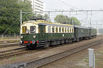 Op 24 september 2005 waren verschillende historische treinen op weg naar Limburg. De bovenste foto's zijn gemaakt bij Echt door Edo Meijer. Met een kwartier tussenruimte kwamen treinstel 186 van de HSA en 113 van de HIJSM voorbij. Een eind zuidelijker, bij Sittard, stond Frank Leurs, die behalve de 186 en de 113 ook Jaap met de museumblokkendoos fotografeerde. |