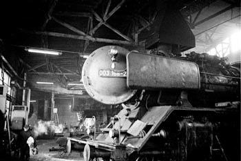 AW Lingen, 21 augustus 1970. Loc 003 131 wordt opgeknapt. Een jaar later zou ik op deze voetplaat een rit mogen meemaken. Klik hier voor meer foto's in AW Lingen. |