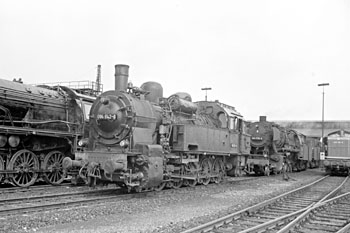Bw Köln Eifeltor, 14 augustus 1970. Twee overgebleven vertegenwoordigers van de Pruisische T16': 094 642 en 094 150. |