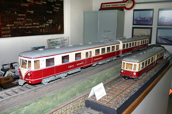 Wesseling, 10 april 2010. Treinstelmodellen in het kleine museum van de Köln-Bonner Eisenbahn-Freunde. |