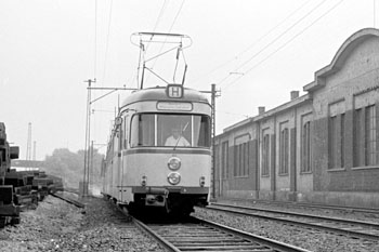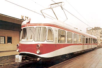 Het in 1960 in dienst gestelde prototype van de Silberpfeil, een serie lichte elektrische treinstellen. Dit prototype, de ET 201, deed tot 1990 dienst. Het is later bij een brand verloren gegaan. Repro uit het verderop beschreven boek. |
