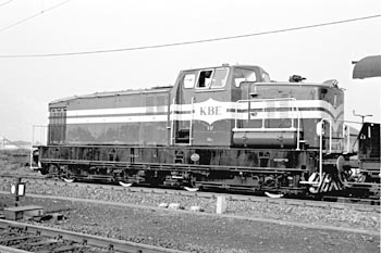 De Köln-Bonner Eisenbahn (KBE) exploiteerde een omvangrijk spoornet tussen Köln en Bonn. Het begon in 1891 met een smalspoorlijn waarop met stoom werd gereden: de "Feurige Elias". Uiteindelijk ontwikkelde zich een fors normaalsporig, grotendeels geëlektrificeerd regionaal spoorwegbedrijf. Hierop vond zowel personen- als goederenvervoer plaats. Het personenvervoer werd met de opkomst van de auto steeds verliesgevender. Begin jaren 80 stopte de KBE met deze activiteit en werden de resterende trajecten geïntegreerd in de stadsnetten van Keulen en Bonn. In 1992 ging het goederenbedrijf op in het nieuwe bedrijf Häfen und Güterverkehr Köln (HGK). Op het kaartje hieronder het lijnennet van de KBE in 1970. De KBE exploiteerde twee spoorlijnen: de Rheinuferbahn en de Vorgebirgsbahn, en een zijtak naar Berrenrath. Tussen Brühl en Wesseling lag een verbindingsbaan tussen de twee stamlijnen. Het grootste deel van het net was tweesporig (dikke rode lijnen op de kaart). Op de gestreepte rode lijnen reden alleen personentreinen, op de gestippelde rode enkelsporige lijnen alleen goederentreinen. Het personenvervoer vond plaats met elektrische treinstellen, de goederentreinen werden vrijwel uitsluitend getrokken door diesellocs. Bij Bonn Dransdorf, Köln Hafen en Köln Eifeltor sloot de KBE aan op het net van de DB. Hier vond uitwisseling van goederenwagens plaats. Verder had de KBE diverse buslijnen in exploitatie (gele lijnen). |