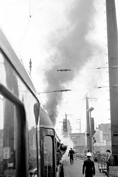 Venlo, 15 juni 1969. Op het Nederlandse traject zal een e-loc de trein overnemen. In de verte zien we loc 1201, met rangeersein, al klaarstaan. Voor meer foto's en een excursieverslag zie onderaan dit scherm. |