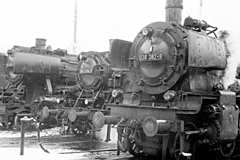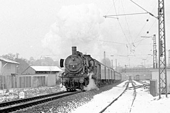 Bw Tübingen, 1 maart 1971. Losse loc 038 382 (38 2383) stormt het Bw voorbij, richting Horb. |