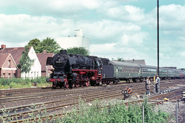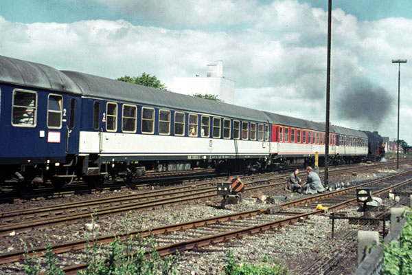 Leer, 17 augustus 1974. Een zevendelige 601 als Intercity "Emsland" van Frankfurt naar Norddeich. |