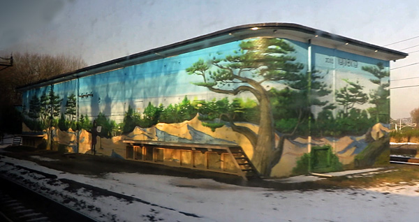 Amersfoort, 14 februari 2017. If you can't beat them, join them. Om graffiti-artiesten op afstand te houden, is dit onderstation van een landschapschildering voorzien. Dit is werk van Robert-Jan Brink, beter bekend als de verfdokter. www.verfdokter.com. |