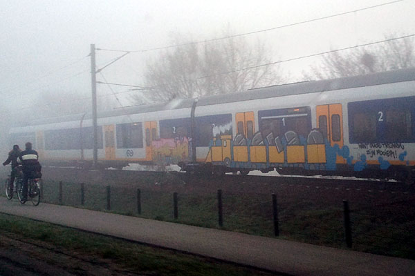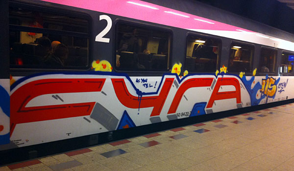 Schiphol, 21 februari 2011. Graffiti op Fyra. Foto Geert Kistemaker. |