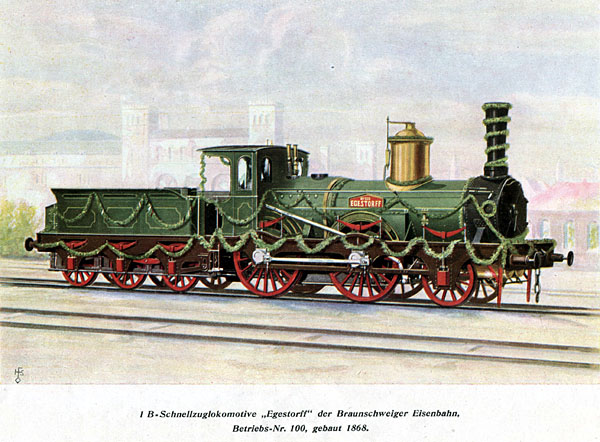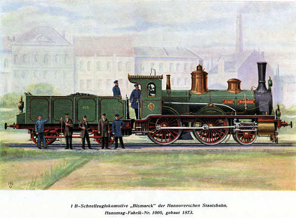 De 100ste en 1000ste locomotief van Hanomag, vernoemd naar Egestorff (de oprichter van Hanomag) en Bismarck (Pruisische ijzervreter). Tekeningen uit "Die Lokomotive in Kunst, Witz und Karikatur". Hanomag, 1922. |