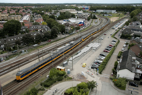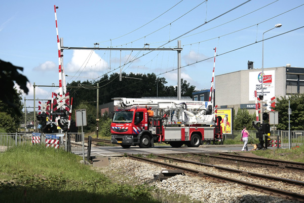 Hilversum, 22 juli 2012. Sinds maandag 30 maart 2020 is het niet meer mogelijk om een foto als deze te maken. Voor hulpdiensten is er een tijdelijke oversteek over het spoor gemaakt bij de Mussenstaat. De brandweer stationeert tijdens de anderhalf jaar durende klus een extra tankautospuit met beroepsbemanning bij Renewi op de 1e Loswal. Foto Henk Koster. |