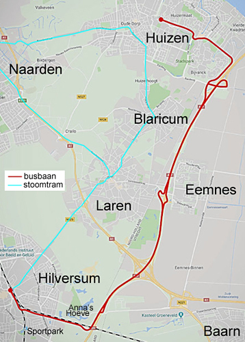 HOV tussen Huizen en HilversumInleidingIn 2020 is in 't Gooi het project HOV van start gegaan. HOV staat voor Hoogwaardig Openbaar Vervoer. Tussen Huizen en Hilversum moeten snelbussen gaan rijden over een vrije busbaan. Dat betekent onder andere dat in Hilversum de overweg in de Oosterengweg wordt vervangen door een tunnel. Dat wordt een tunnel met twee verdiepingen: onderin auto's, daarboven langzaam verkeer. Auto's zullen enkele jaren moeten omrijden. Voor langzaam verkeer, voetgangers en hulpverleners is er een tijdelijke overweg. De busbaan wordt aangelegd ondanks vele protesten die er de afgelopen jaren tegen zijn geuit. Er rijdt namelijk al een snelbus die in de behoeften van Huizen en andere gemeenten voorziet. De busbaan gaat bij Hilversum door een deel van het natuurgebied bij Anna's Hoeve en het landgoed Monnikenberg. Met dank aan onze Hilversumse correspondenten Henk Koster en Rienk Nauta. Meer over het HOV-project