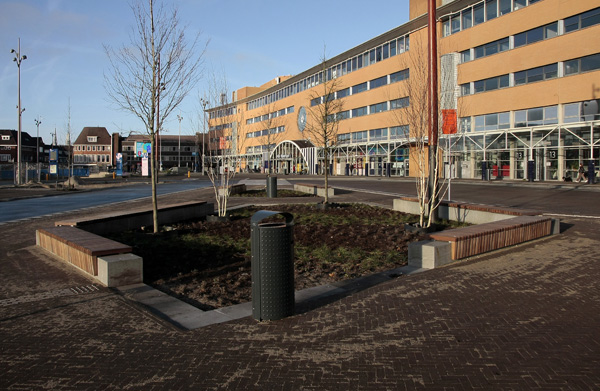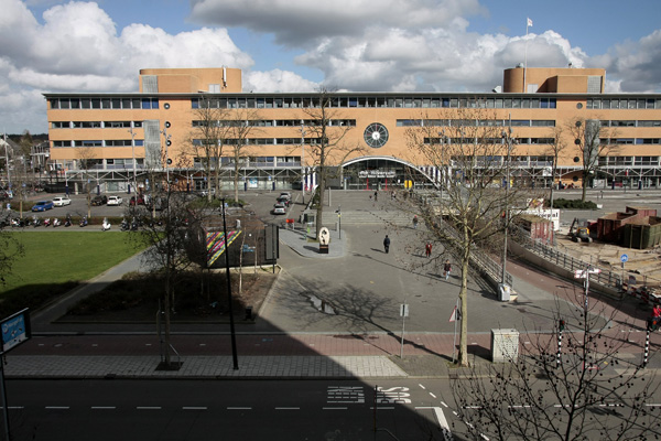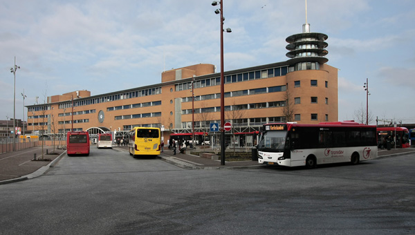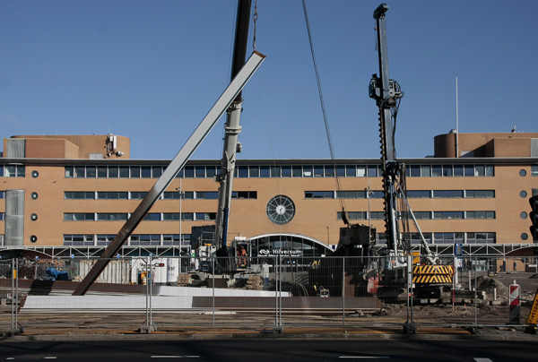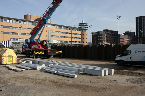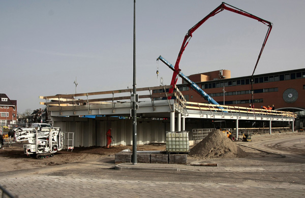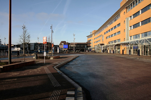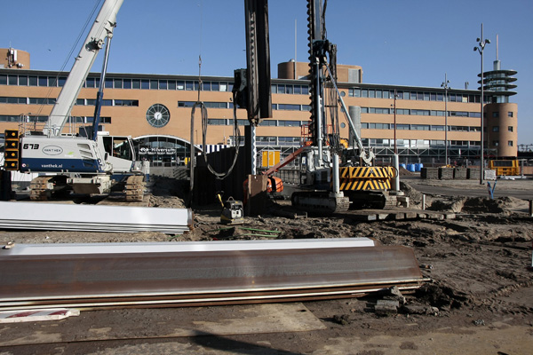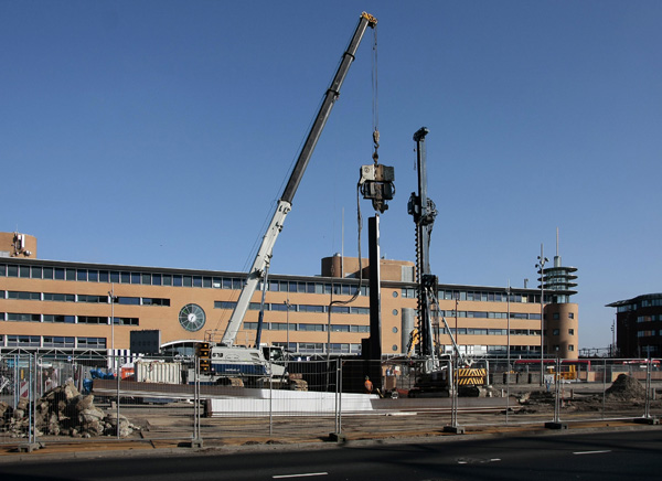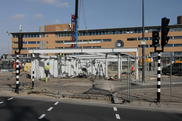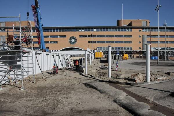 Het busstation is klaar, de rest in volle gang. Dat staat achterop de bus, op de vorige foto. Na jaren van voorbereiding kan men nu beginnen met het volgende project in het stationsgebied: het bouwen van een nieuwe ondergrondse fietsenstalling voor 5000 fietsen, met twee woontorens daar bovenop. Maar voordat het zover is moet er nog heel veel gebeuren.