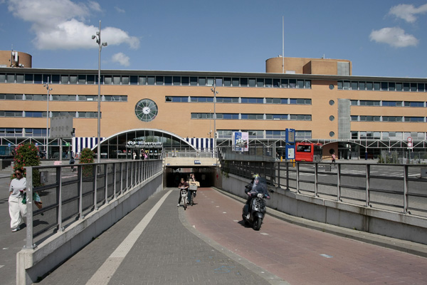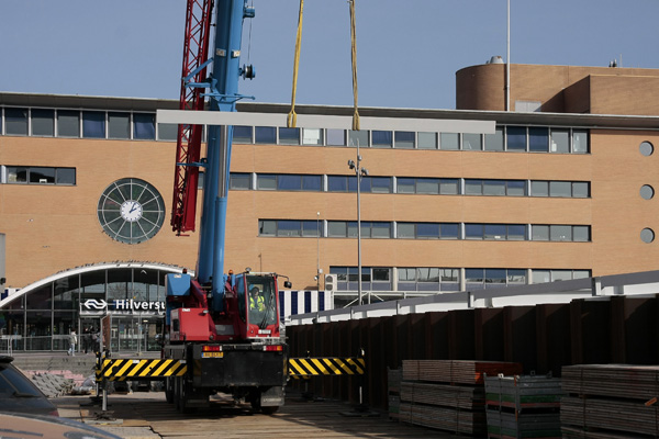 Hilversum, mei/juni 2025. De inrit van de parkeergarage werd uiteindelijk in het voorjaar van 2025 afgebroken. Vanaf dat moment wordt de zuidelijke entree gebruikt als hoofdingang.
