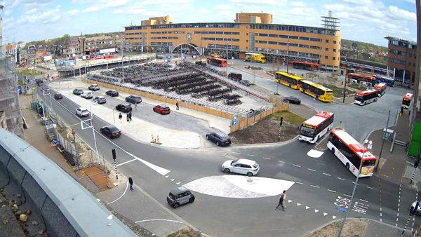 Hilversum, 4 januari 2026 (webcam). Op deze dag wordt het busstation voor het eerst in gebruik genomen.