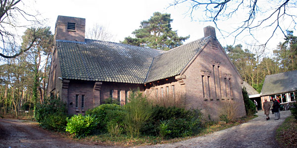 Op zondag 4 februari 2007 ben ik naar de kerk geweest. Dat is een plaats waar ik als atheïst pur sang niet erg vaak kom. De kerk is de Woudkapel in Bilthoven Noord. Deze kleine kerk vertoont enige gelijkenis met Hgb III in Utrecht, een van de hoofdgebouwen van NS, bijgenaamd De Inktpot. Deze gelijkenis is geen toeval: beide gebouwen zijn ontworpen door dr. ir. G.W. van Heukelom. |
