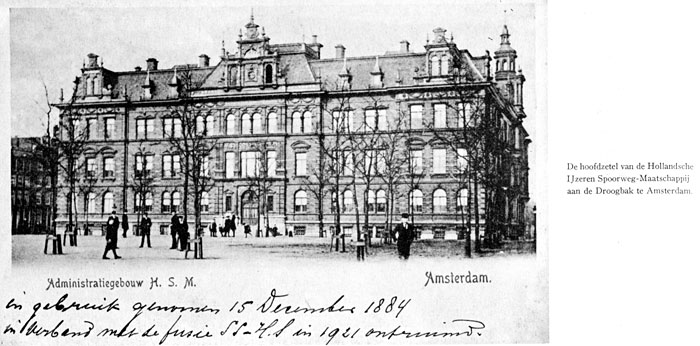 Amsterdam. De "Droogbak", het hoofdkantoor van de HSM. Dit gebouw staat er nog steeds. In de jaren 70 werd het met sloop bedreigd doordat Amsterdam hier een vierbaans snelweg wilde aanleggen. Tegenwoordig is het een rijksmonument. Zie Google Maps. |