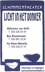 We moesten trouwens helemaal niet in deze kerk zijn, maar in het zaaltje ernaast. Daar waren we op uitnodiging van schimmentheater "Licht in het donker". Bea Kloosterman, een van de krachten achter de schermen, is de vroegere basisschooljuf van twee van onze dochters. Zij weet ons nog steeds te vinden voor allerlei klusjes. Bijvoorbeeld het ontwerpen van een website voor haar schimmentheater Licht in het Donker. |