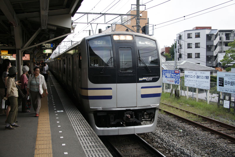 Ook de lokale treinen komen met behoorlijke snelheid een station binnen. Dit is een stoptrein, die je qua