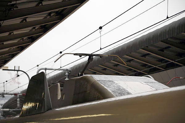 Typische Shinkansen-stroomafnemer. Ziet er buitengewoon eenvoudig uit, maar dat is het vast