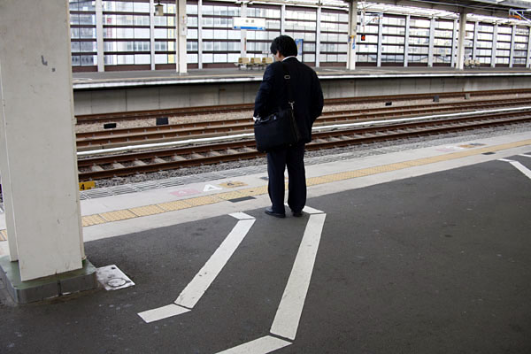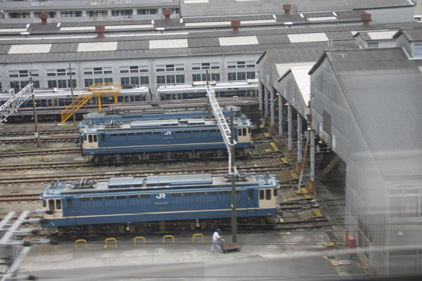 de achterkant. Er wordt in Japan links gereden, dus op de beide linkersporen wordt van de kijker af gereden