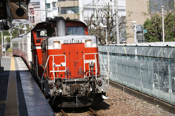rode vlag is ook ergens voor. 20 september 2006, Himeji (lijn Osaka - Hakata, verder naar het westen).