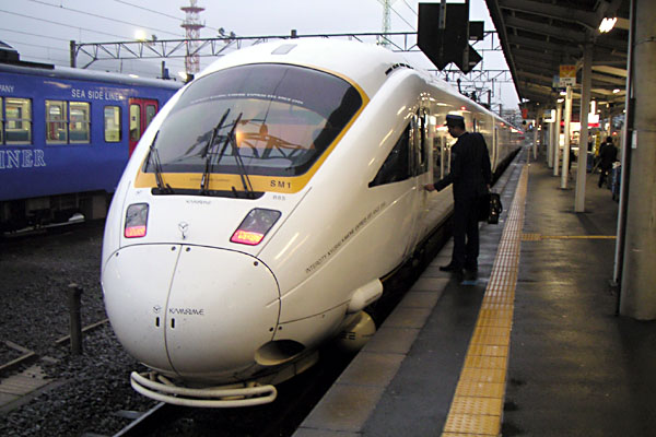Nagasaki, april 2006. De supersnelle en uiterst luxe Kamome Express, die rijdt tussen Hakata en Nagasaki. Foto Gerard van Wieringen. |