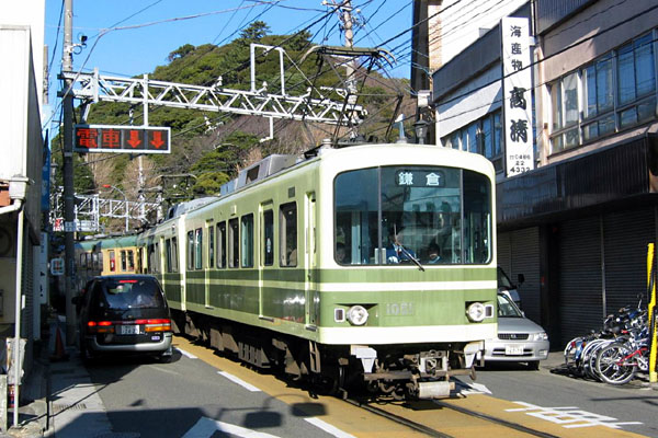 De treinen rijden door de straten van Kamakura, 6 januari 2003. Foto Peter van Vonderen. |