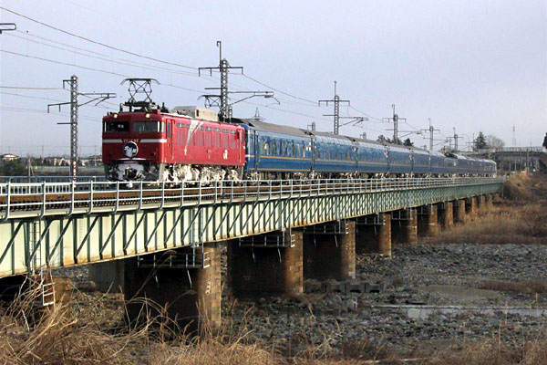 De slaaptrein van Sapporo naar Ueno bij Nozaki, 6 februari 2004. Foto Peter van Vonderen. |
