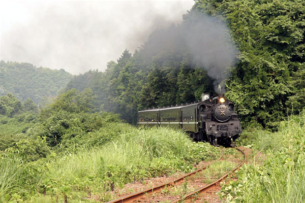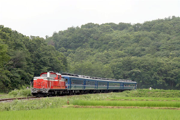 Deze diesel met historische rijtuigen rijdt twee keer per jaar (in een weekend) vanuit Ueno een slag naar Karasuyama t.b.v. het Yamaage festival. 23 juli 2006. |