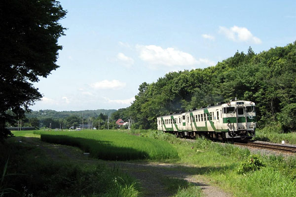 De rest van het jaar rijden meestal twee gekoppelde dieseleentjes op de zijlijn naar Karasuyama. 30 juli 2006. Foto's Peter van Vonderen. |