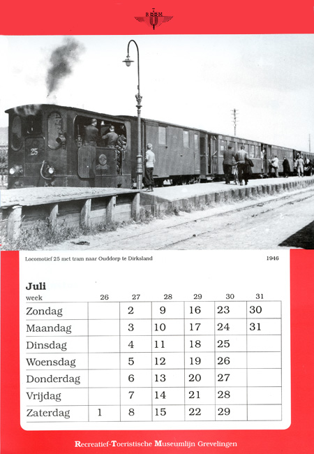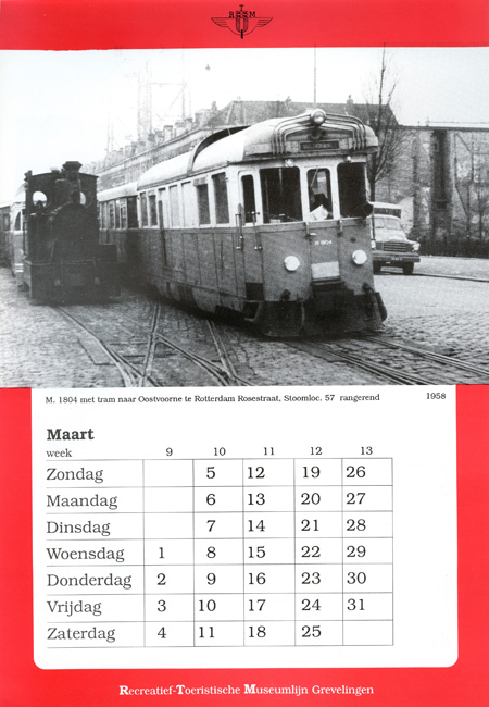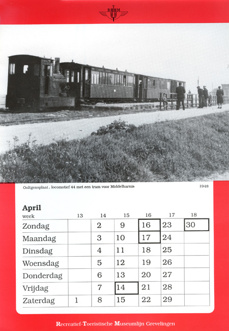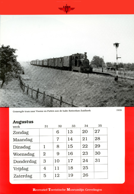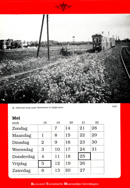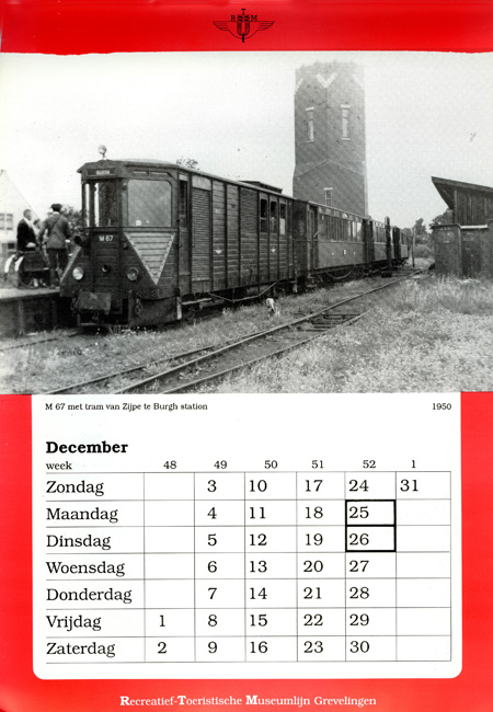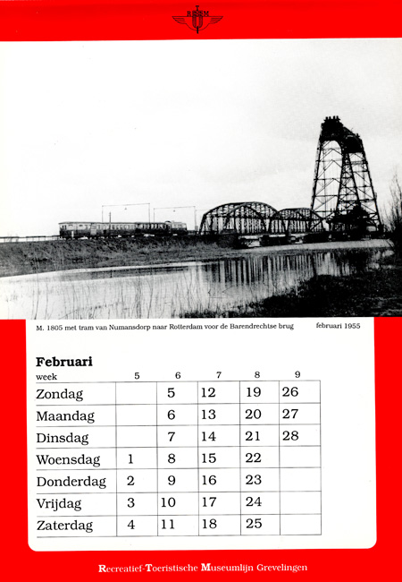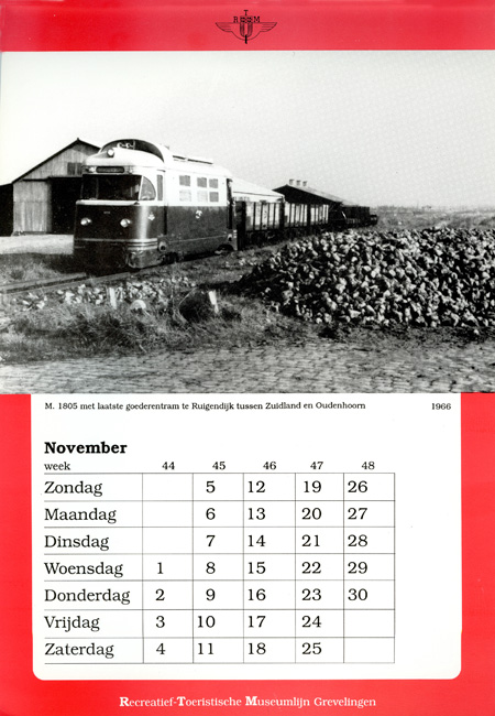 Kalender uit 1995, uitgegeven door de Recreatief-Toeristische Museumlijn Grevelingen (RTM). |