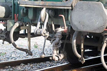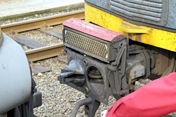 Rangeerkoppeling zoals die vroeger op locomotoren werd gebruikt. |