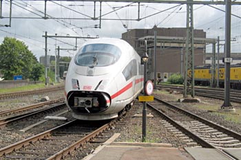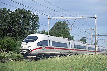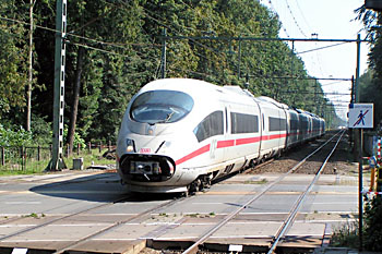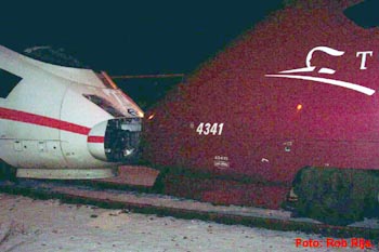 Op 13 januari 2003 raakte onderweg een ICE defect. Het treinstel was al op halve kracht uit Leidschendam vertrokken. Bij Lisse gaf de andere helft het ook op. Freewheelend werd Haarlem bereikt. Met een Thalys werd het stel naar de Watergraafsmeer gesleept. Handig dat deze verder verschillende treinstellen dezelfde soort koppeling hebben. Foto's Rob Rijs. |