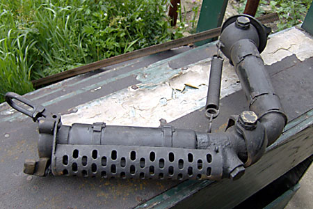 Rotterdam, SSN-depot, 27 mei 2007. Stoomtreinen werden aanvankelijk helemaal niet verwarmd. Hoogstens kregen passagiers in de eerste klas af en toe een warme stoof onder hun voeten geschoven. Later werden de rijtuigen verwarmd met stoom, die natuurlijk geleverd werd door de locomotief. Onder de trein door liep een stoomleiding. Op deze foto een stoomkoppeling zoals die aan elke uiteinde van de rijtuigen was aangebracht. |