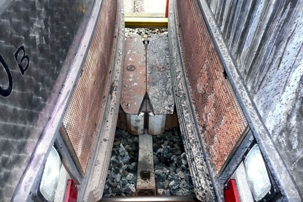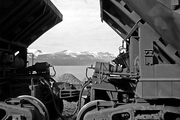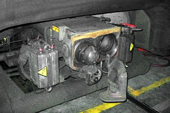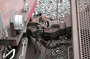 Kiruna, 14 april 2004. De koppelingen die voor zware ertstreinen in Lapland worden gebruikt. Foto Bernd Zimmermann. |
